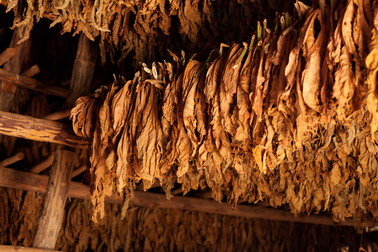 Fire-Curing (Räuchertrocknung) erzeugt kräftige, rauchige Noten – typisch für Kentucky und Latakia.